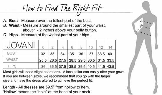 c. We strongly recommend that you check dress measurements before purchasing an item. Every product page includes a picture of the product accompanied by a size-chart that includes the measurements for the gown (measurements vary among designers so please pay attention to the measurement grid).