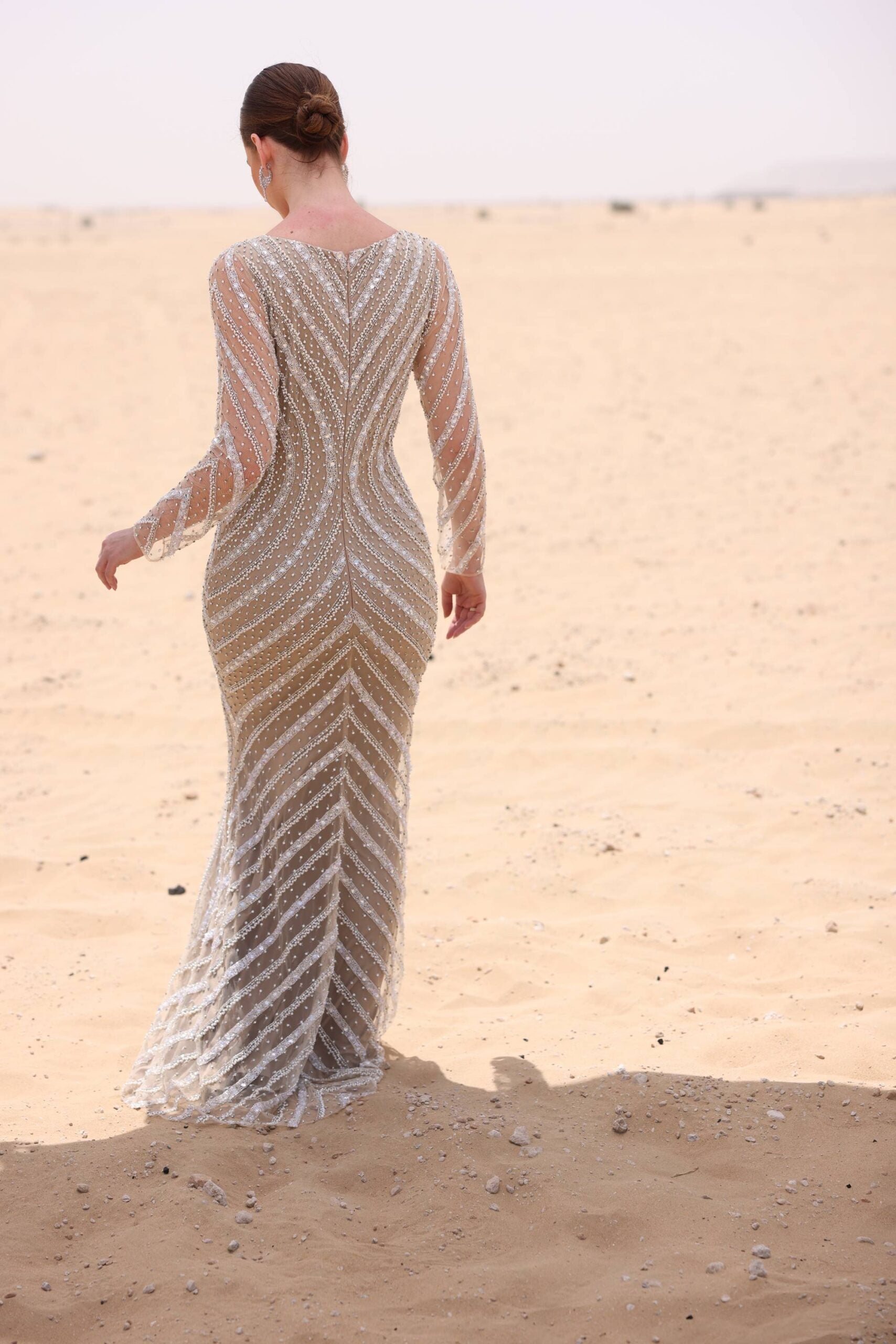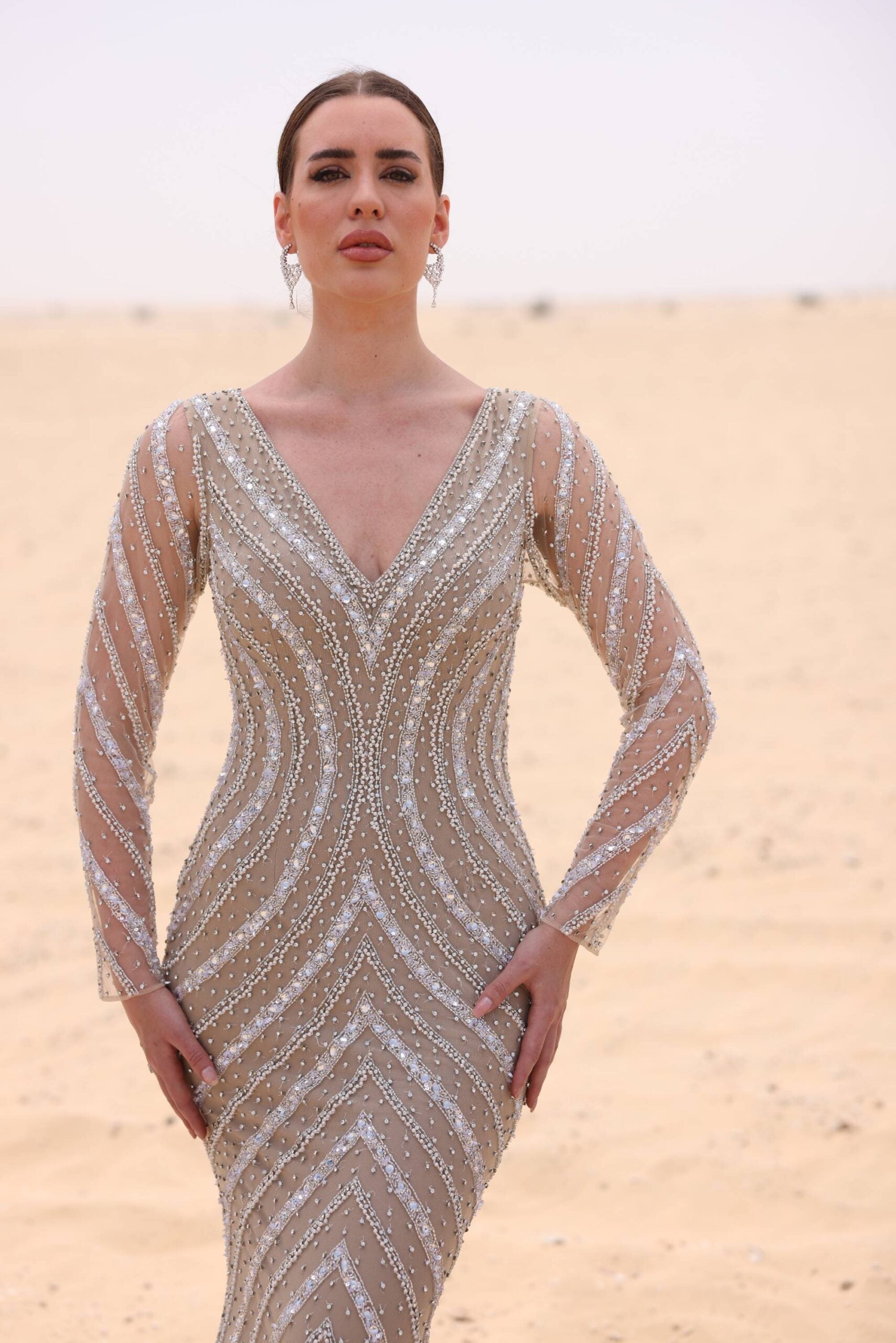 CHIC AND HOLLAND EW990001 DRESS Nude Silver Size 14 Ready To Ship