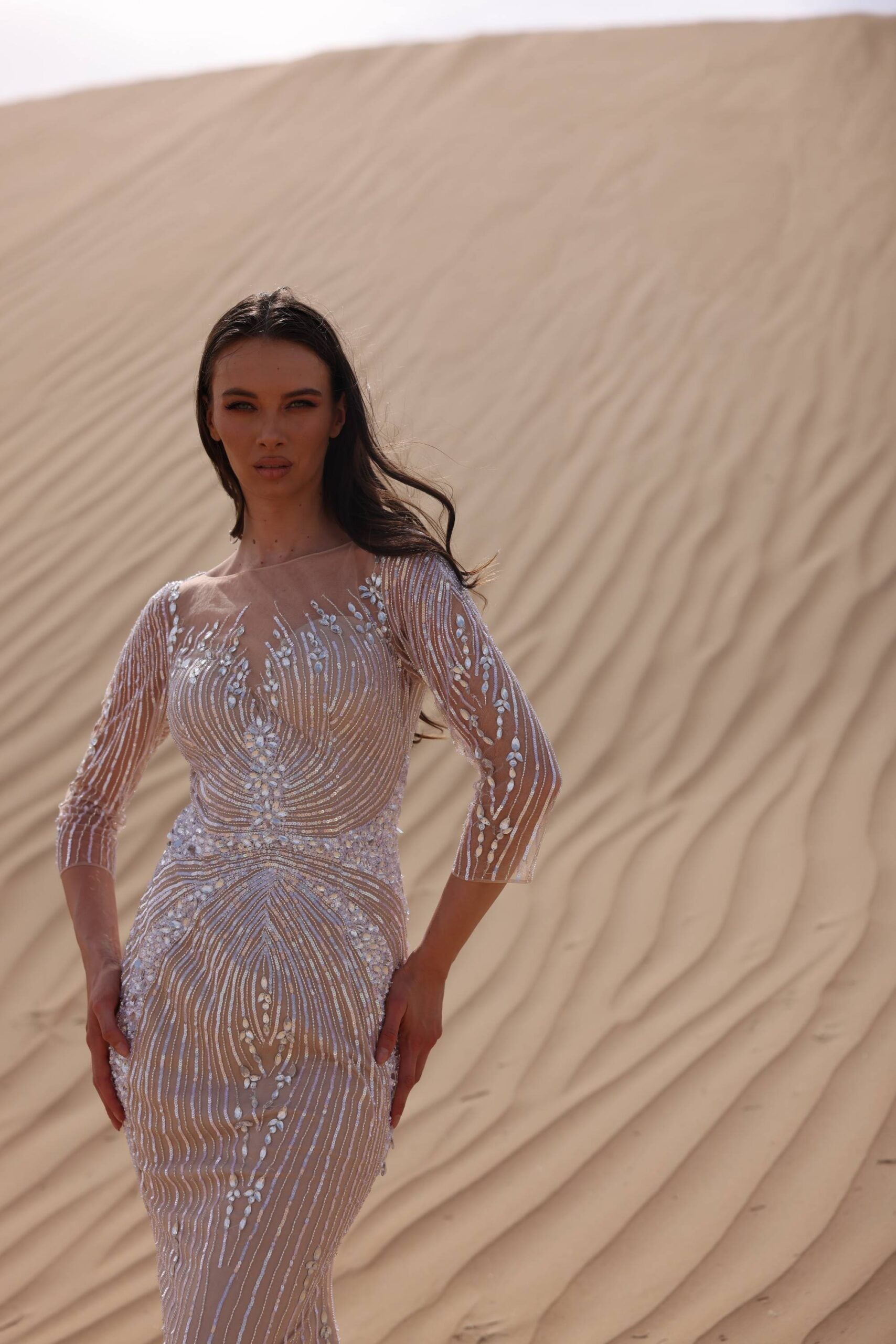 CHIC AND HOLLAND EW990012 DRESS Nude Silver Size 8 Ready To Ship