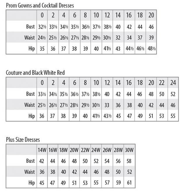 c. We strongly recommend that you check dress measurements before purchasing an item. Every product page includes a picture of the product accompanied by a size-chart that includes the measurements for the gown (measurements vary among designers so please pay attention to the measurement grid).