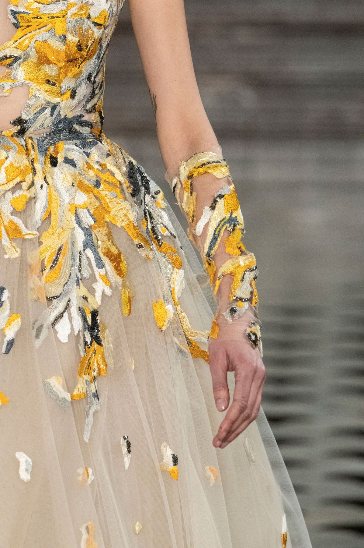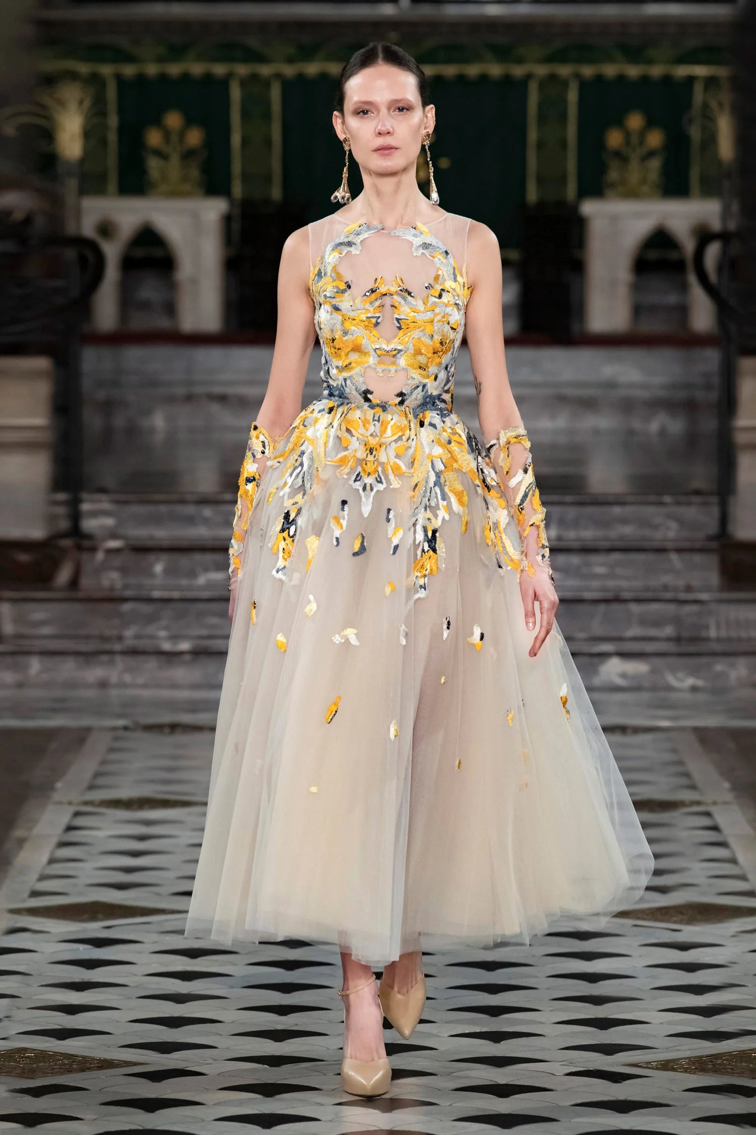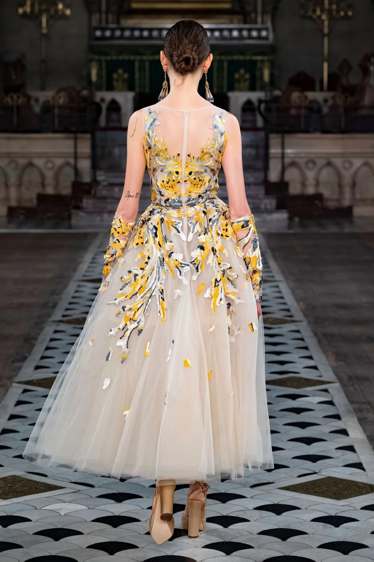 Ivory beige tulle dress with a gold fusion embroidery delicately embroidered along the top and on the skirt. Size 4 Ready To ship