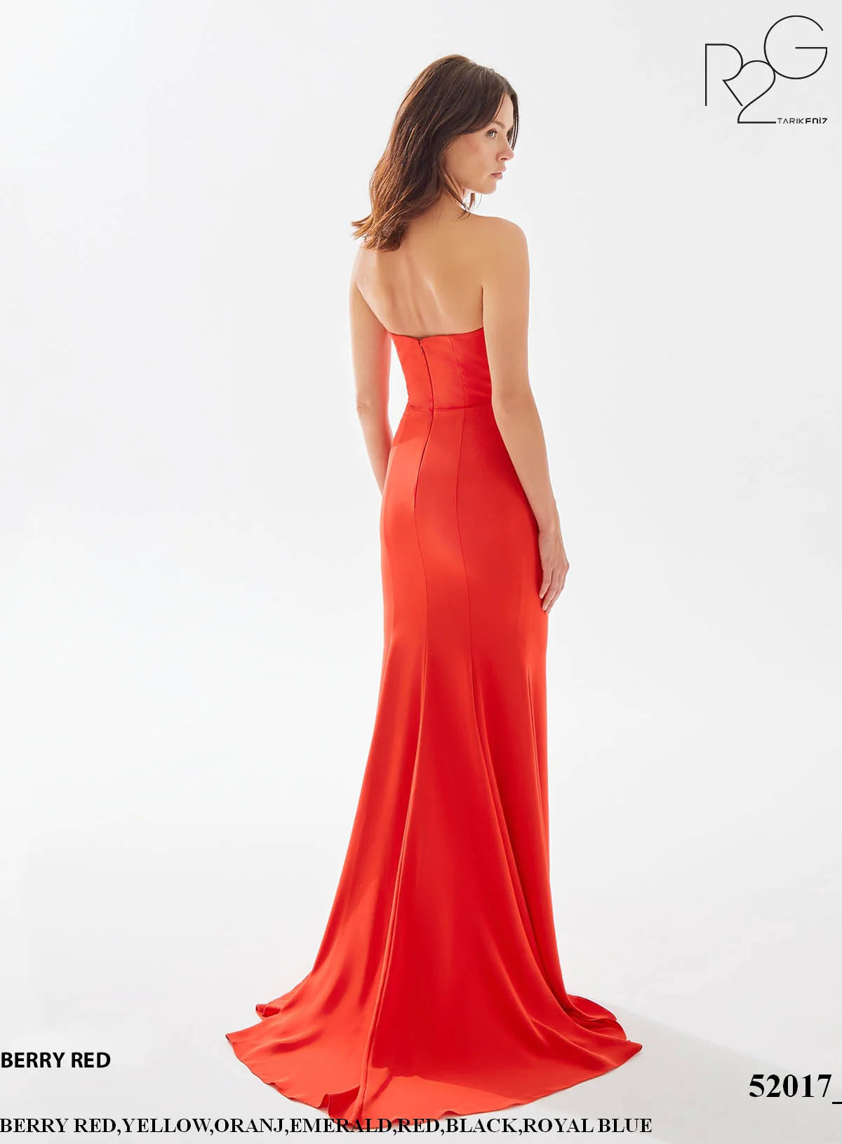 Sheath pattern formal wear party dress by Tarik Ediz 52017. The dress features a straight neckline. It has a gathered wrap bodice and an A-line skirt. The dress falls straight to the floor with a chapel train. It is a body-tight dress that hugs your curves naturally. Rings with this dress will be a smart choice.Royal Blue Size 10 Ready To Ship